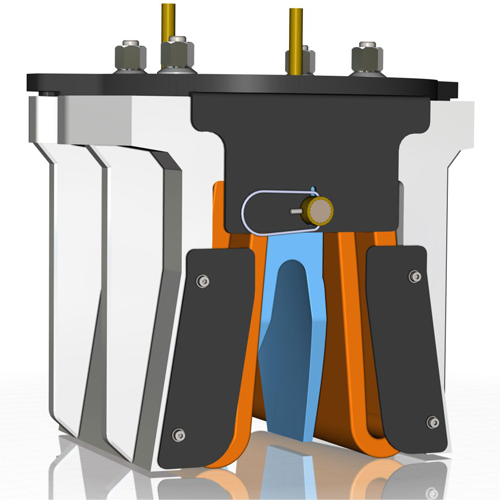 A versão standard desta máquina é equipada com dois postos de quente e dois de frio para contrafortes de termoplástico, mas pode ser entregue, por encomenda com quatro postos de quente para melhores resultados também em contrafortes de pele.