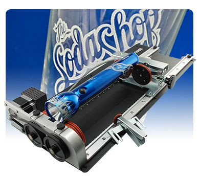 Eixo Rotativo para objetos cilindricos Disponível para todos os sistemas Epilog Legend, o eixo Rotativo adiciona a capacidade de gravar garrafas, copos, lanternas e outros itens cilíndricos. |